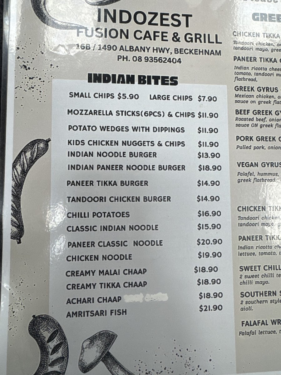 INDOZEST FUSION CAFE & GRILL Menu